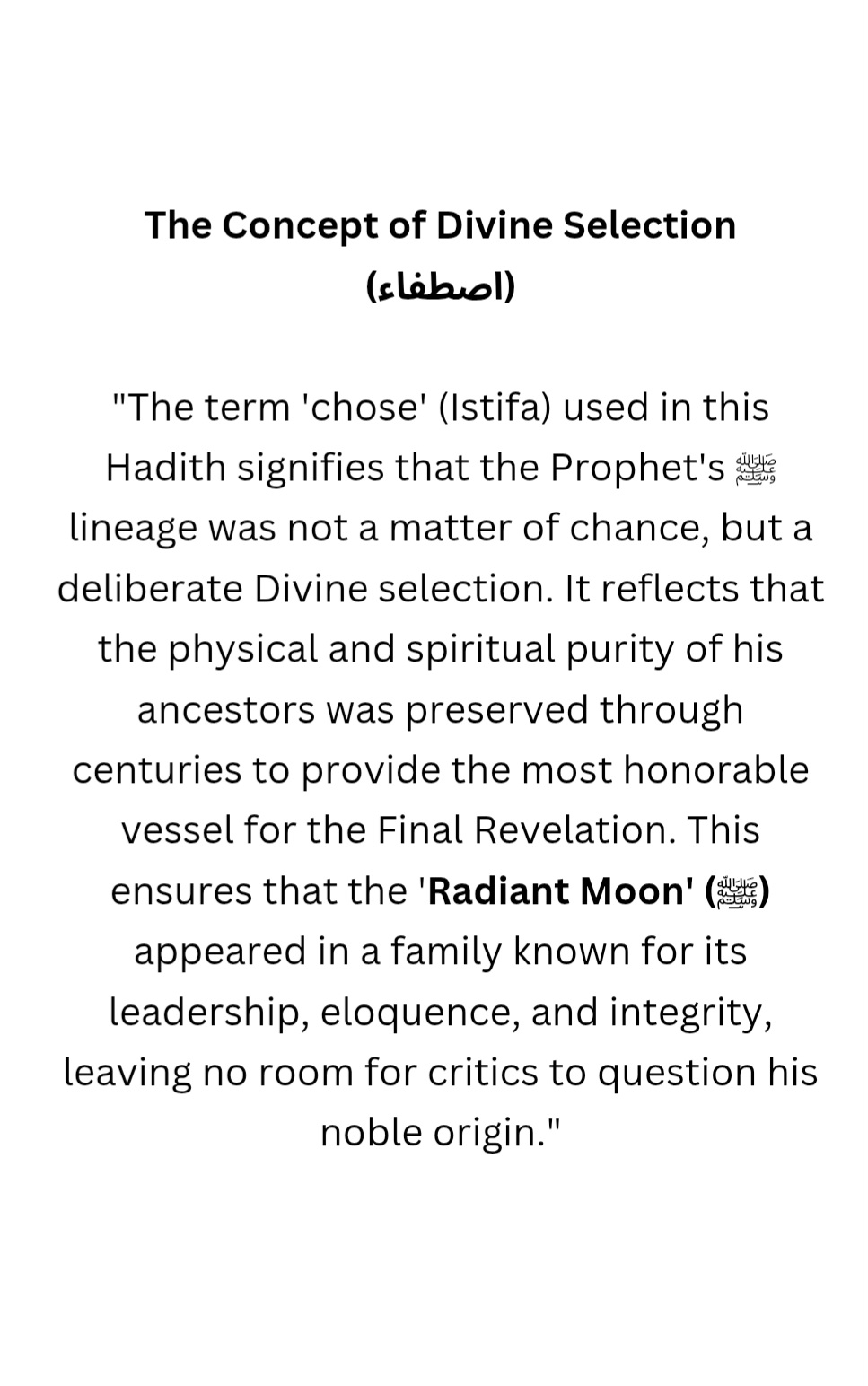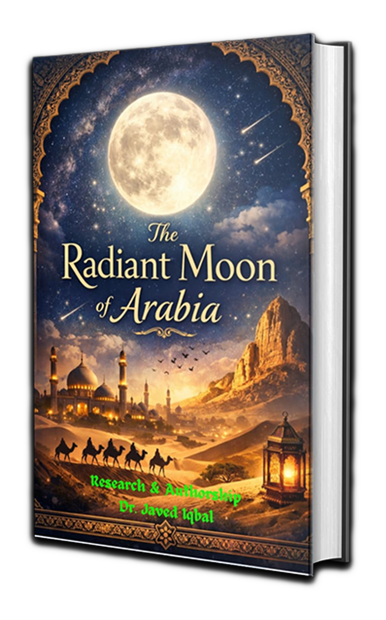 The Radiant Moon of Arabia ﷺ is a comprehensive study of the Seerah (biography) of the Holy Prophet Muhammad ﷺ, meticulously researched and presented by Dr. Javed Iqbal. This book aims to bridge the gap between historical authenticity and spiritual connection for English-speaking readers worldwide.”